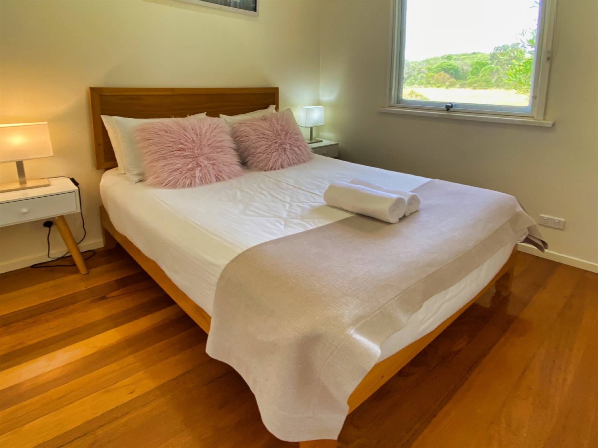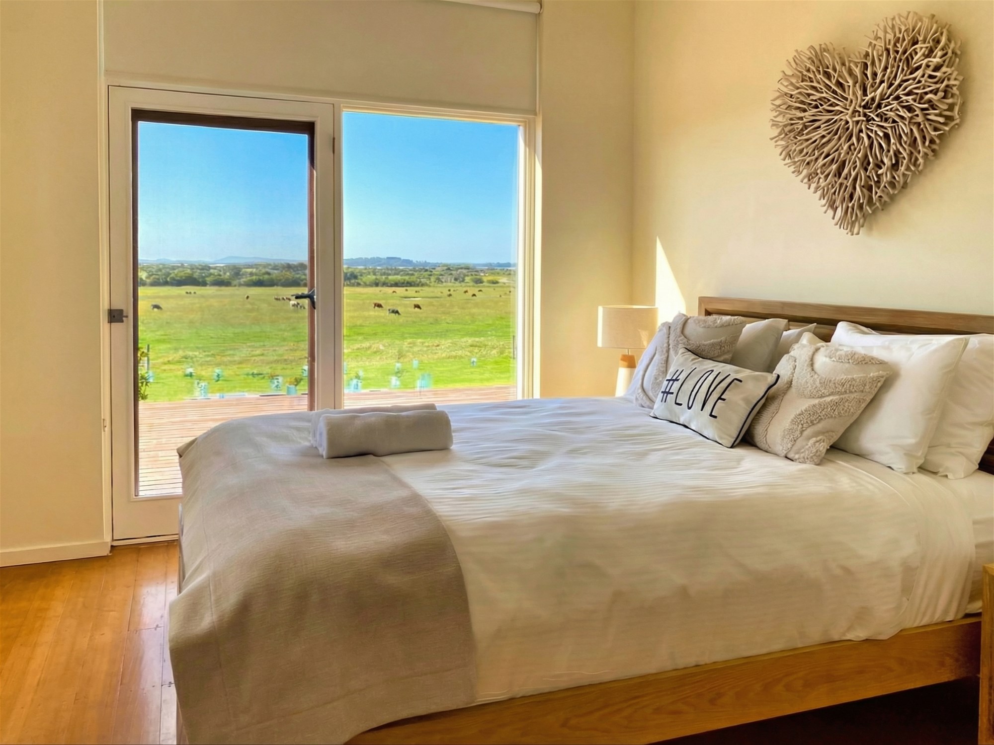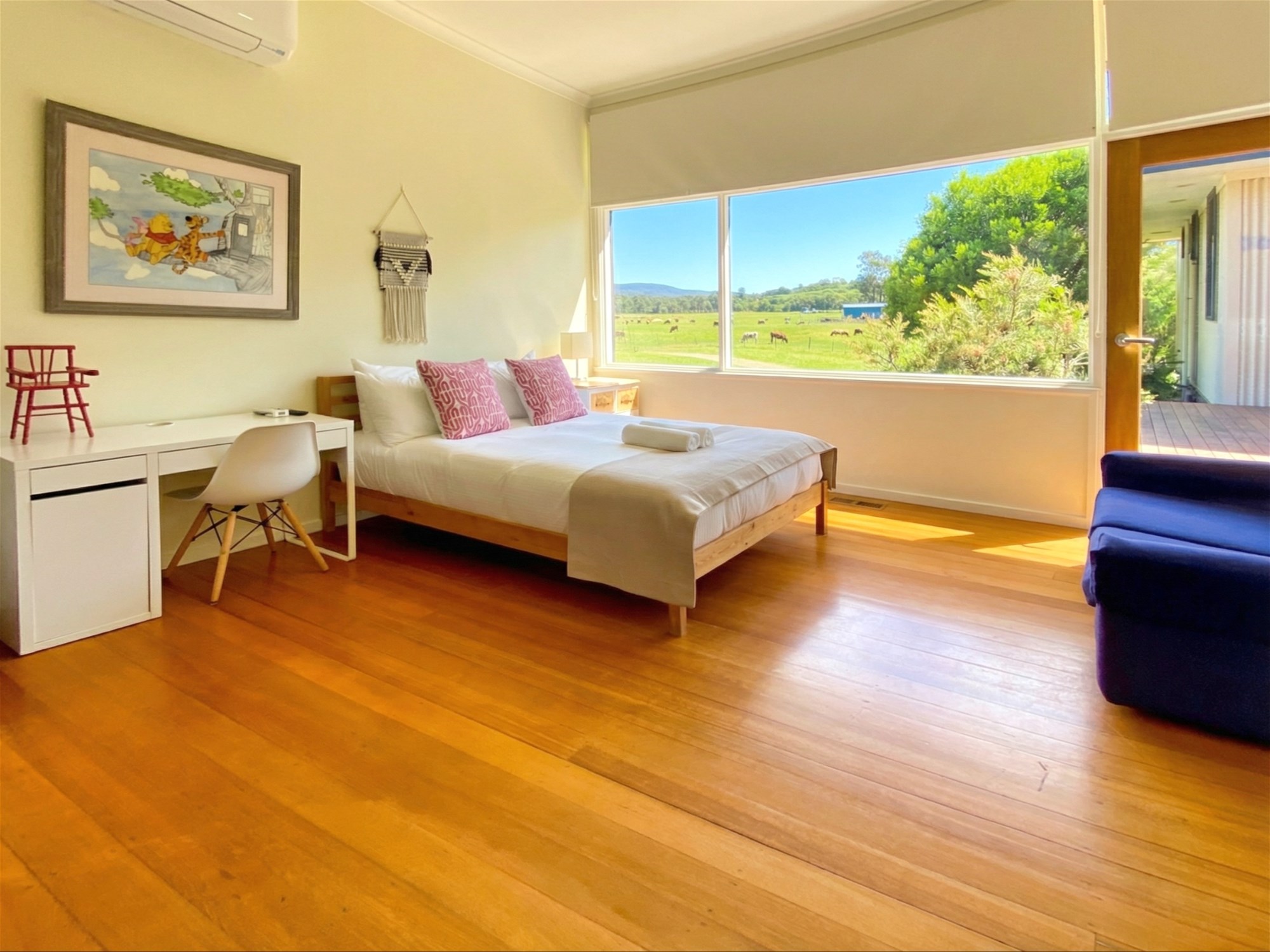Accommodation in the main residence comprises four generous bedrooms, positioned to take full advantage of the quiet bush setting. The sleeping quarters are sanctuaries in their own right, offering restful retreats after long days spent exploring the coast.