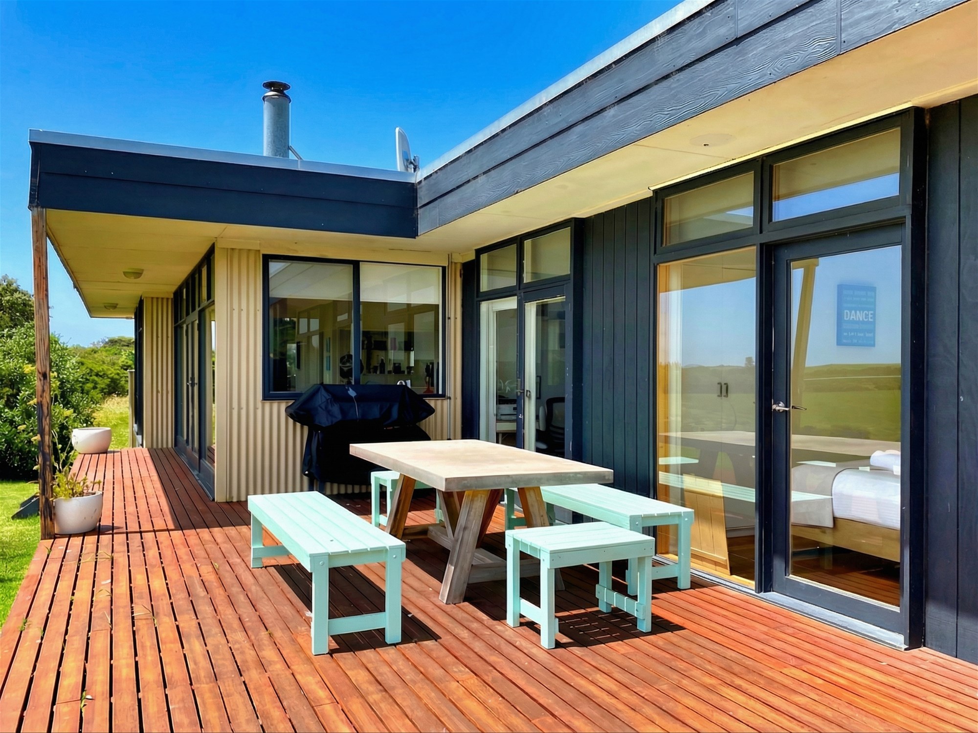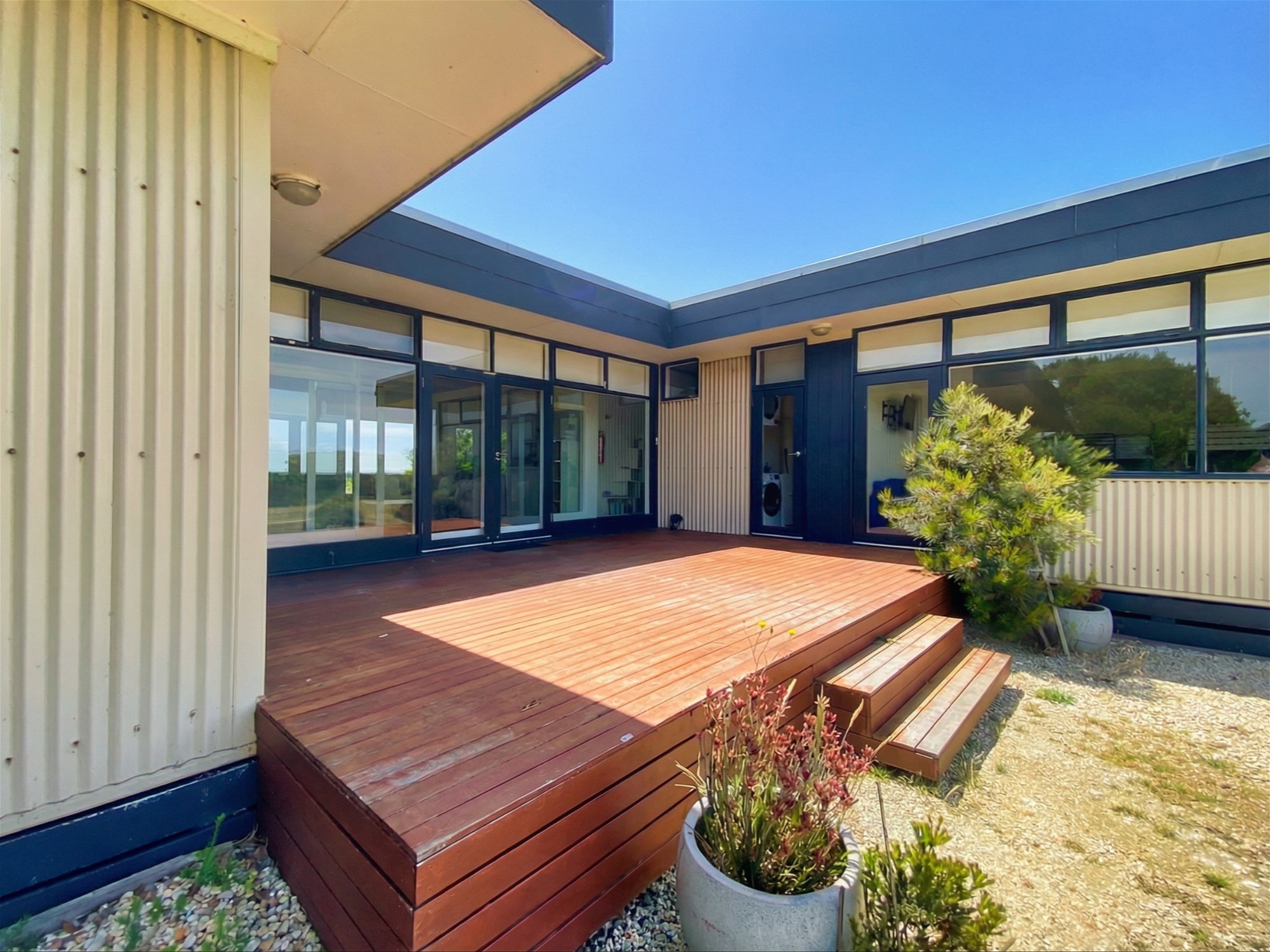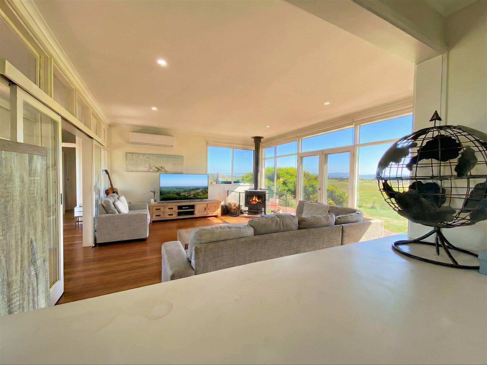 The culinary zone is designed for the entertainer. A modern kitchen, equipped with stainless steel appliances and ample cabinetry, overlooks the dining area and the landscape beyond. It serves as the social hub of the home, seamlessly flowing out to an expansive timber deck. This outdoor living zone is nothing short of spectacular: a vast stage for alfresco dining, morning coffees in the sun, or twilight gatherings where the only soundtrack is the local birdlife and the gentle lap of the tide.