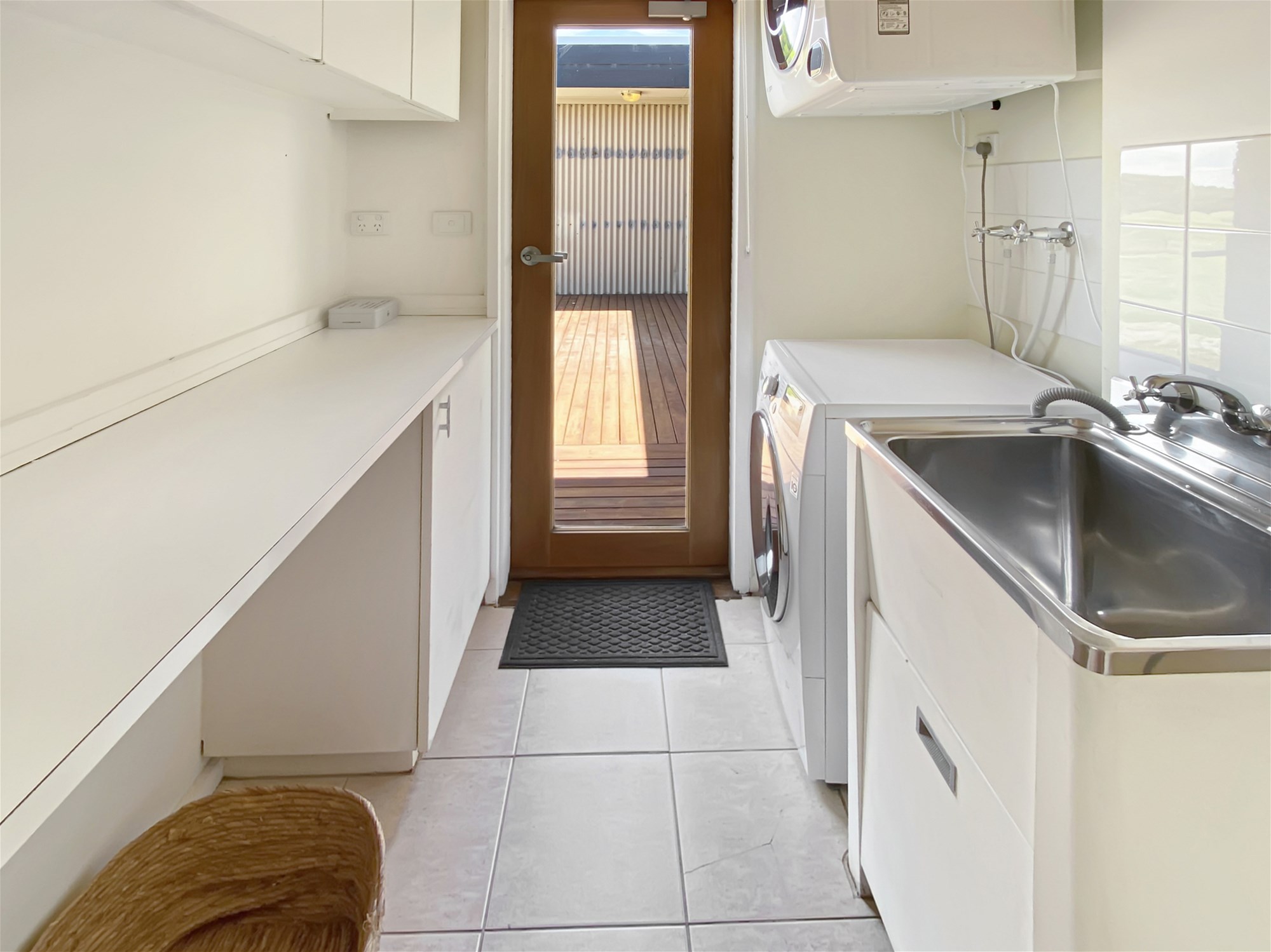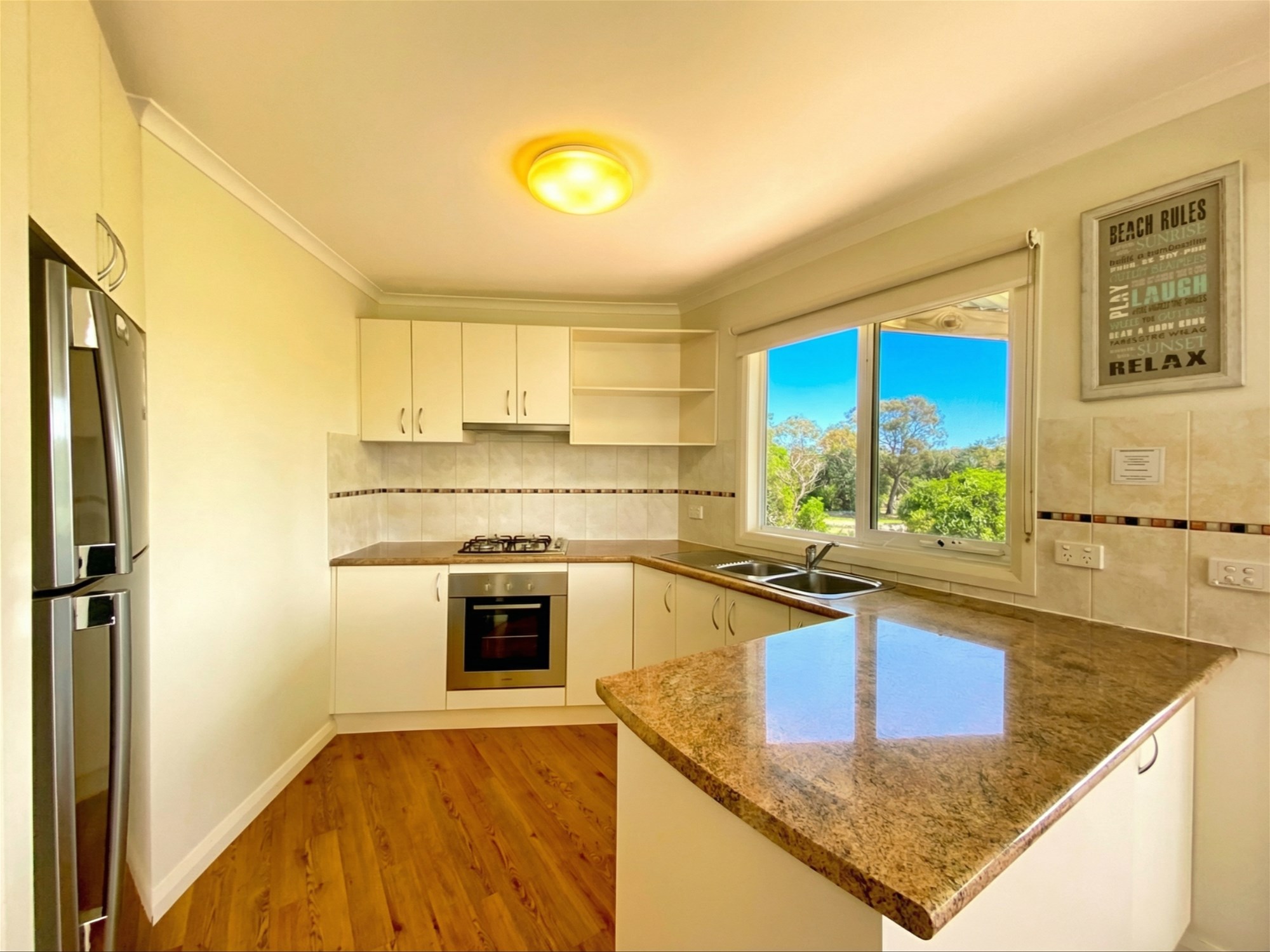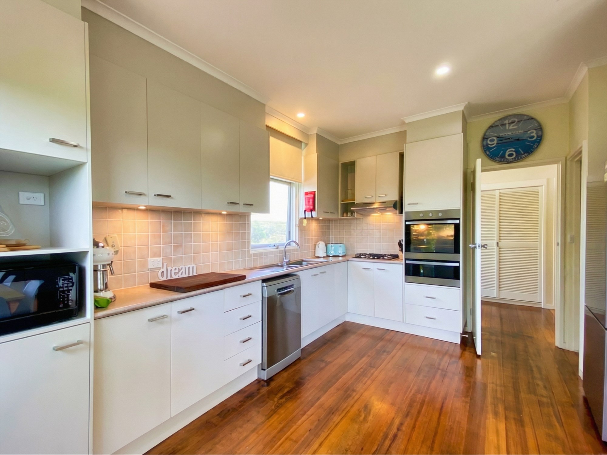 The culinary zone is designed for the entertainer. A modern kitchen, equipped with stainless steel appliances and ample cabinetry, overlooks the dining area and the landscape beyond. It serves as the social hub of the home, seamlessly flowing out to an expansive timber deck. This outdoor living zone is nothing short of spectacular: a vast stage for alfresco dining, morning coffees in the sun, or twilight gatherings where the only soundtrack is the local birdlife and the gentle lap of the tide.